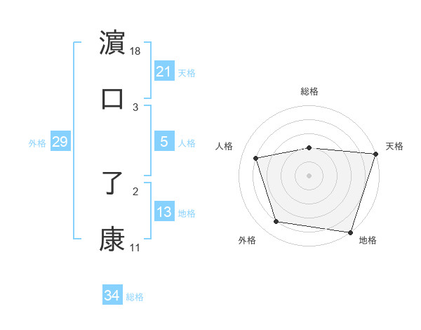 濵口 了康さんの天格は21画の5点!