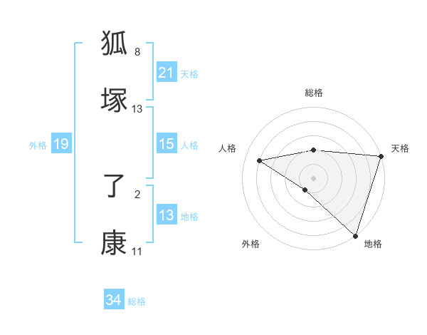 狐塚 了康さんを姓名の画数から五運を鑑定