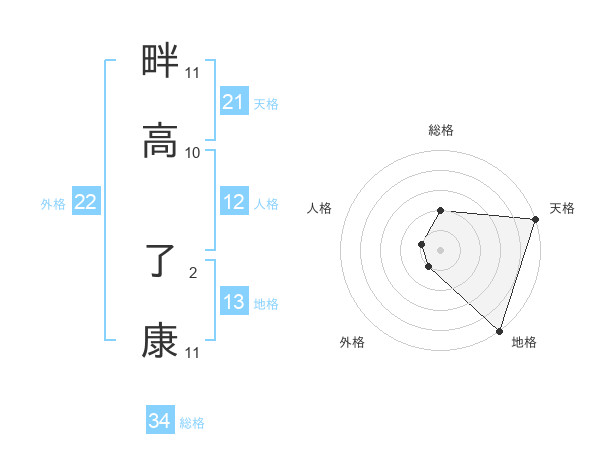 畔高 了康さんの天格は21画の5点!