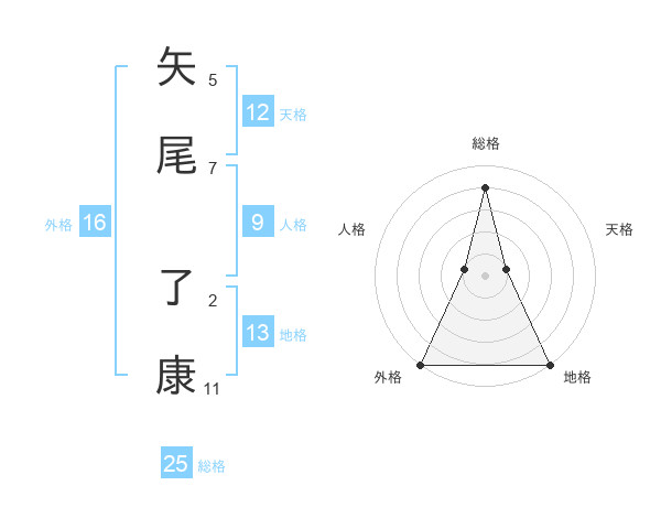 矢尾 了康さんを姓名の画数から五運を鑑定