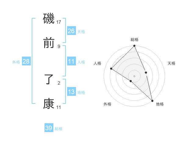 磯前 了康さんの総格は39画の5点!