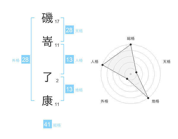 磯嵜 了康さんを姓名の画数から五運を鑑定