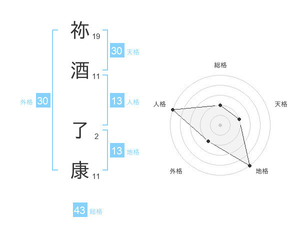 祢酒 了康さんの天格は30画の2点!