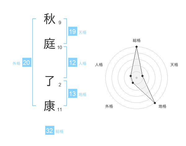 秋庭 了康さんの総格は32画の5点!