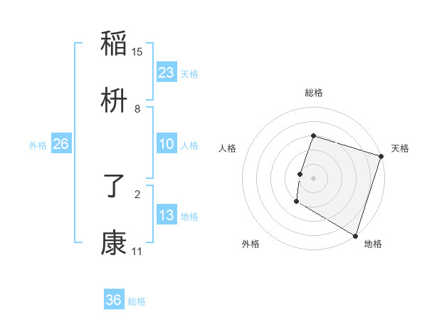 稲枡 了康さんを姓名の画数から五運を鑑定