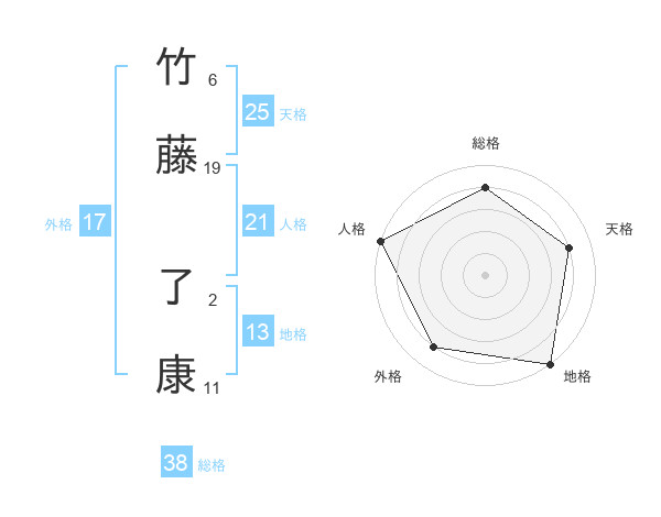 竹藤 了康さんの総格は38画の4点!