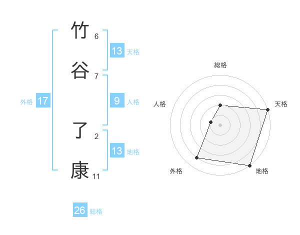 竹谷 了康さんの総格は26画の2点!