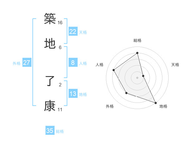 築地 了康さんの総格は35画の4点!
