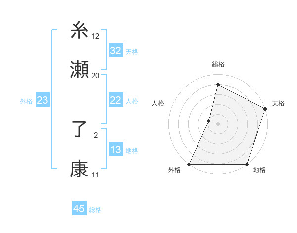 糸瀬 了康さんの外格は23画の5点!