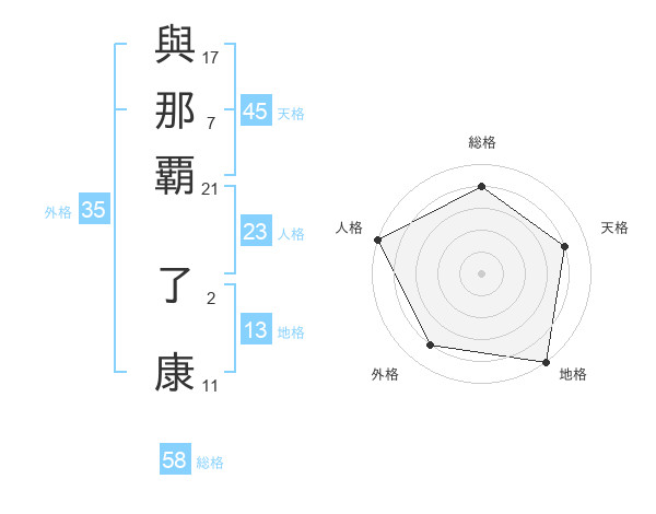 與那覇 了康さんを姓名の画数から五運を鑑定