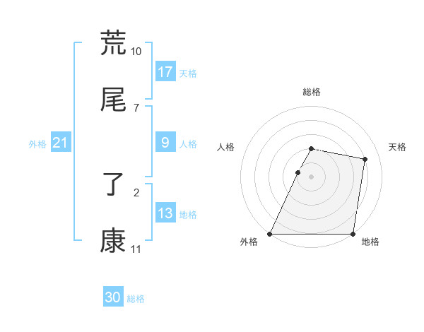 荒尾 了康さんを姓名の画数から五運を鑑定