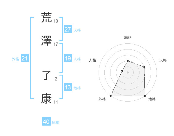 荒澤 了康さんを姓名の画数から五運を鑑定