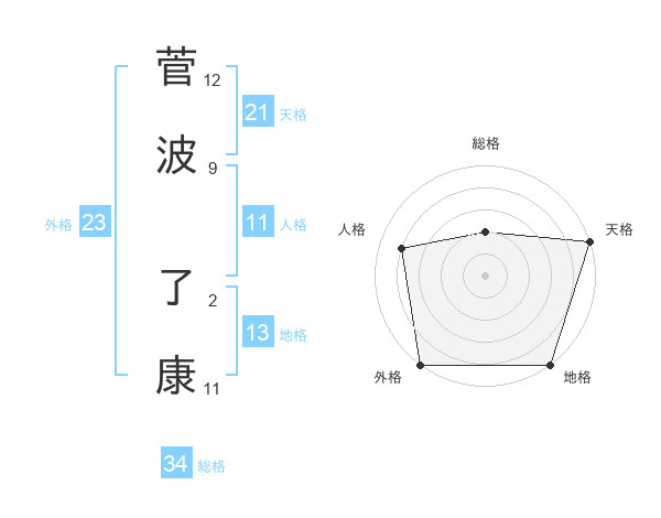菅波 了康さんの天格は21画の5点!