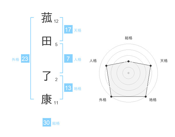 菰田 了康さんの天格は17画の4点!