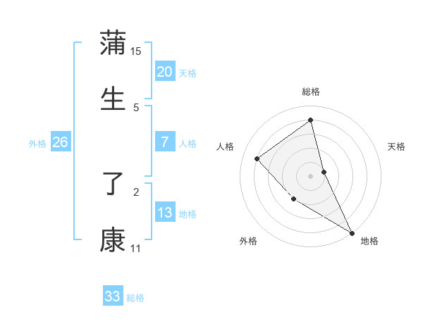 蒲生 了康さんの地格は13画の5点!