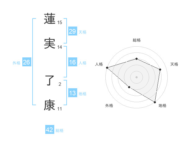 蓮実 了康さんの地格は13画の5点!