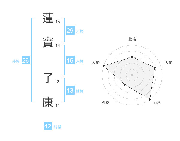 蓮實 了康さんを姓名の画数から五運を鑑定