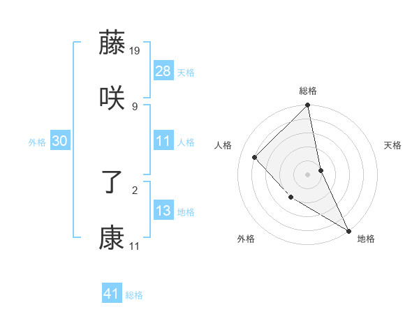 藤咲 了康さんの総格は41画の5点!