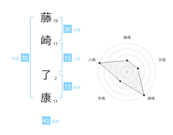 藤崎 了康さんを姓名の画数から五運を鑑定