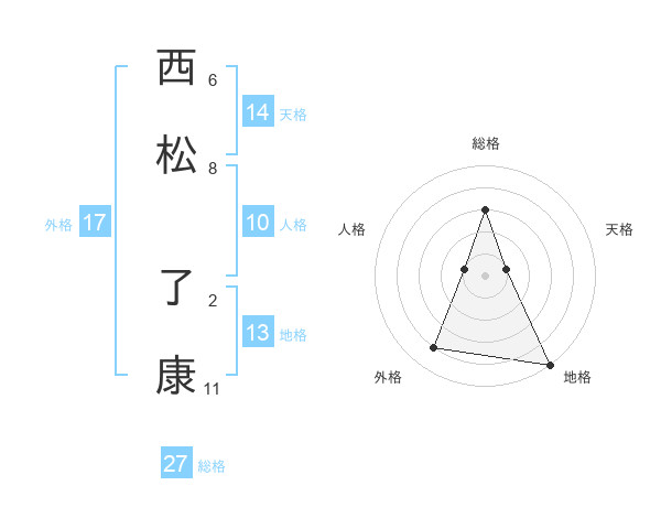 西松 了康さんの総格は27画の3点!