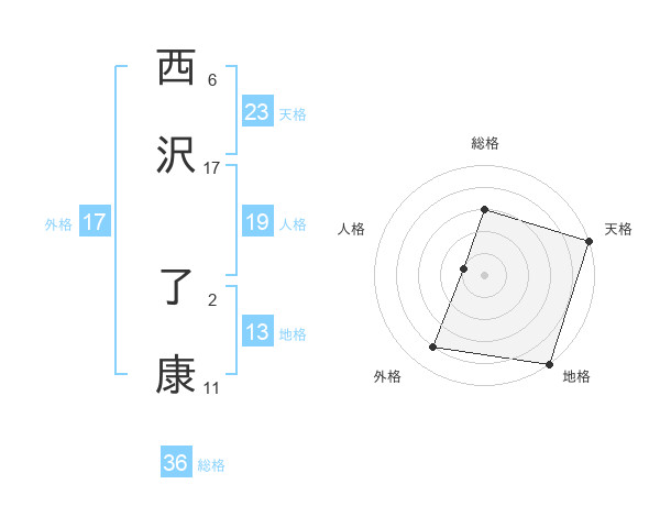 西沢 了康さんの天格は23画の5点!