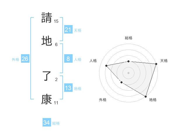 請地 了康さんの天格は21画の5点!
