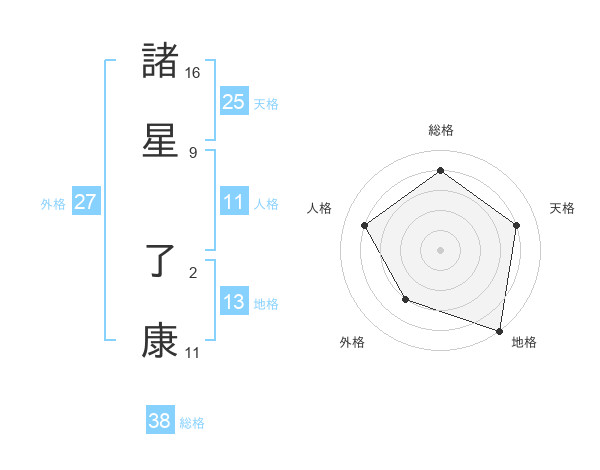 諸星 了康さんの総格は38画の4点!