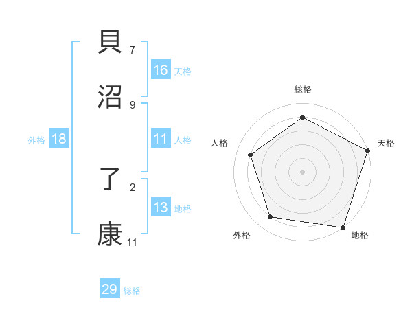 貝沼 了康さんの総格は29画の4点!