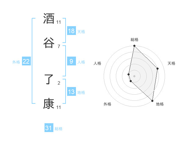 酒谷 了康さんを姓名の画数から五運を鑑定