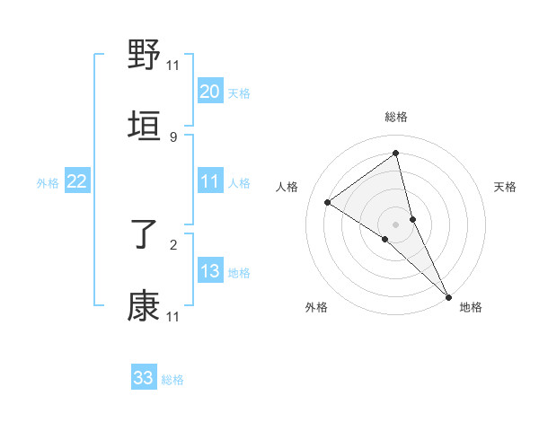 野垣 了康さんの総格は33画の4点!