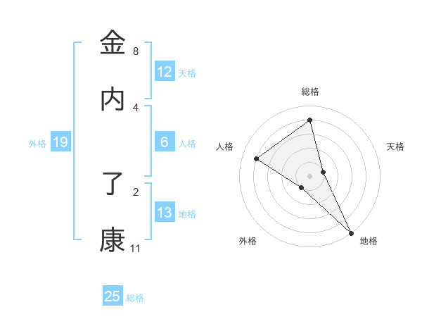 金内 了康さんの総格は25画の4点!