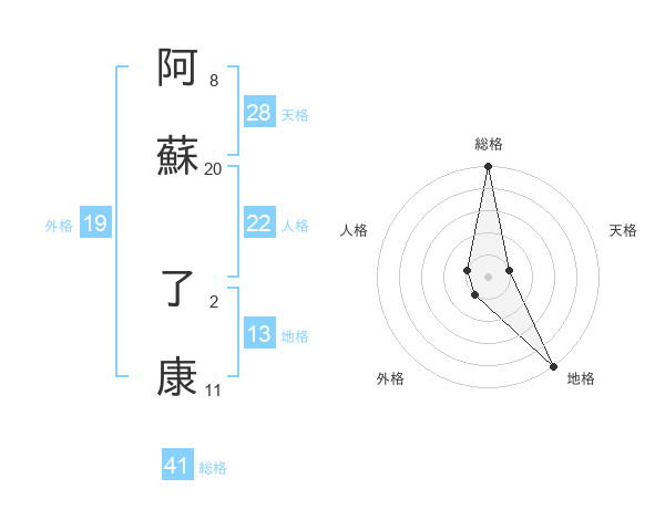 阿蘇 了康さんを姓名の画数から五運を鑑定