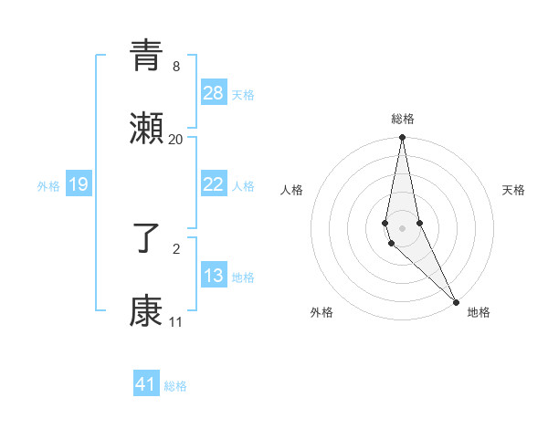 青瀬 了康さんの総格は41画の5点!
