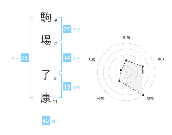 駒場 了康さんの地格は13画の5点!