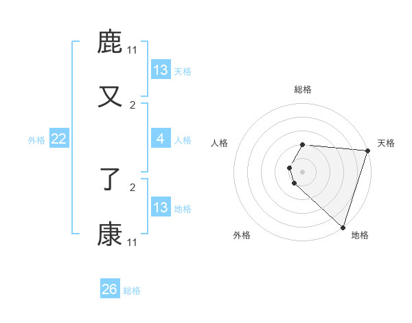 鹿又 了康さんを姓名の画数から五運を鑑定