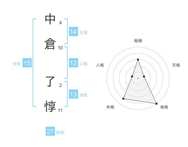 中倉 了惇さんを姓名の画数から五運を鑑定
