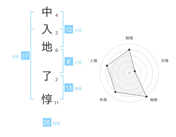 中入地 了惇さんの総格は25画の4点!
