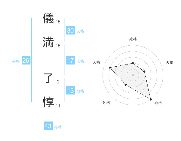 儀満 了惇さんの総格は43画の2点!