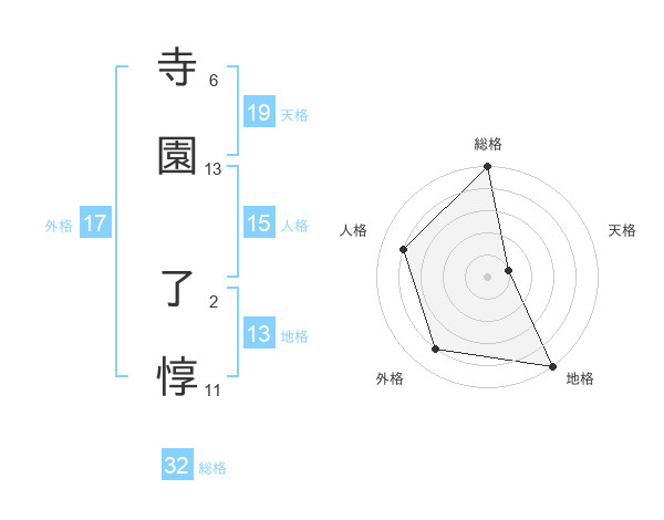 寺園 了惇さんを姓名の画数から五運を鑑定