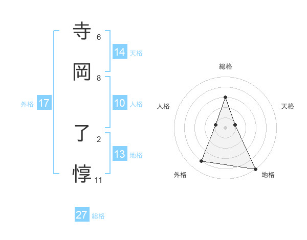 寺岡 了惇さんの外格は17画の4点!