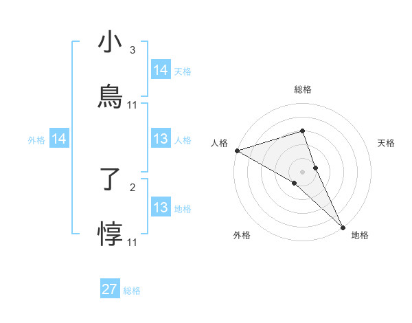 小鳥 了惇さんの総格は27画の3点!