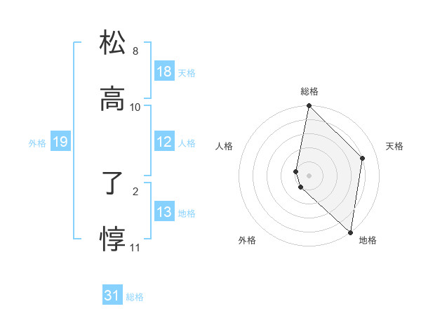 松高 了惇さんの総格は31画の5点!