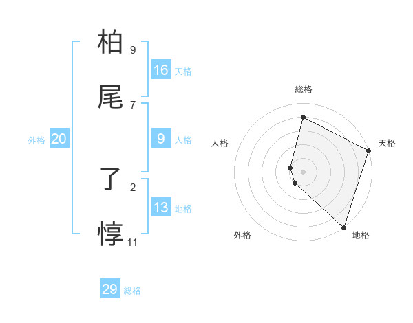 柏尾 了惇さんの総格は29画の4点!