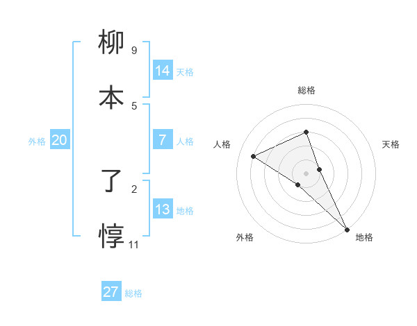 柳本 了惇さんの総格は27画の3点!