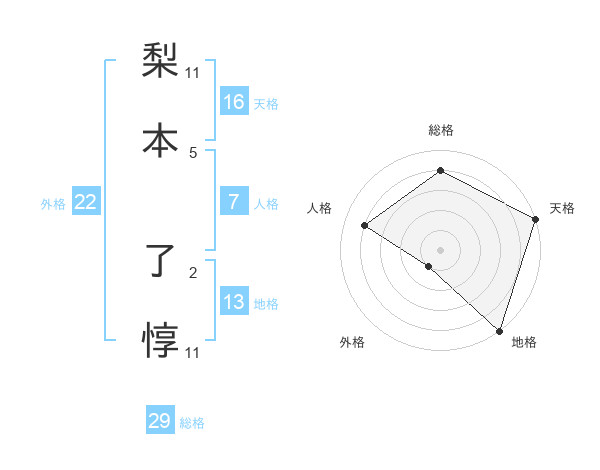 梨本 了惇さんを姓名の画数から五運を鑑定
