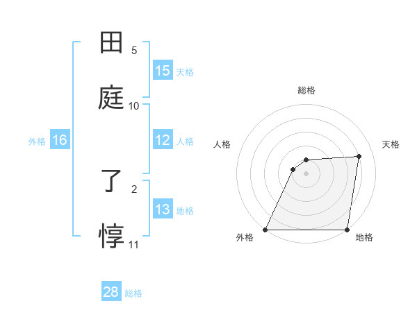 田庭 了惇さんを姓名の画数から五運を鑑定
