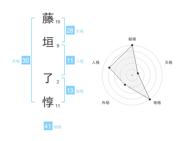 藤垣 了惇さんを姓名の画数から五運を鑑定