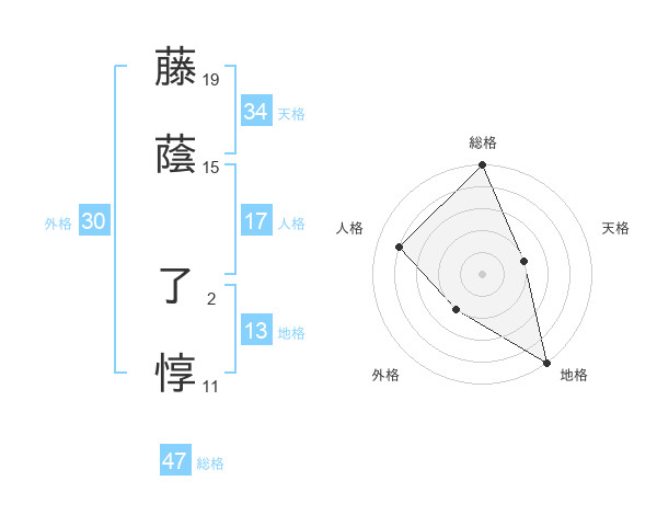 藤蔭 了惇さんの総格は47画の5点!