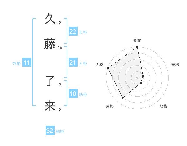久藤 了来さんの天格は22画の1点!