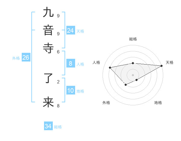 九音寺 了来さんを姓名の画数から五運を鑑定